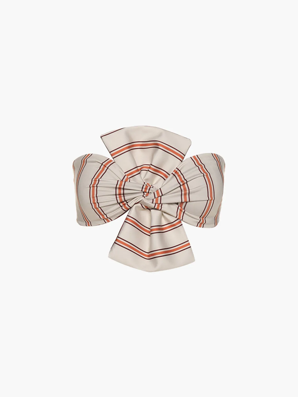 Our Juan de Dios Albatross Top in Orange Stripes/Wine boasts bold style in a bandeau silhouette with an exaggerated bow. Detailed with a tie closure in the back, this reversible swim top features one solid side and one side with stripes. Crafted by artisans in Colombia.