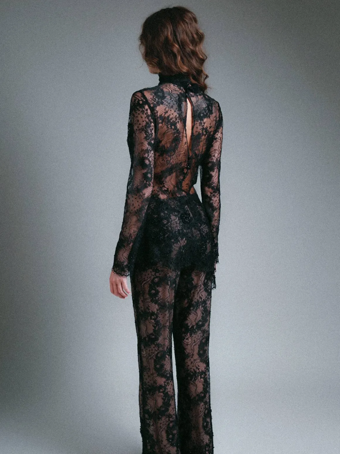 Our Francesca Miranda Elipse Pants in Black are a high waisted pant made from a lace detailing. The pants have a slight flare at the bottom. Handcrafted by female heads of households in Colombia.
