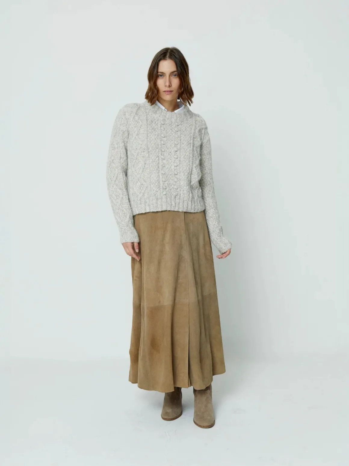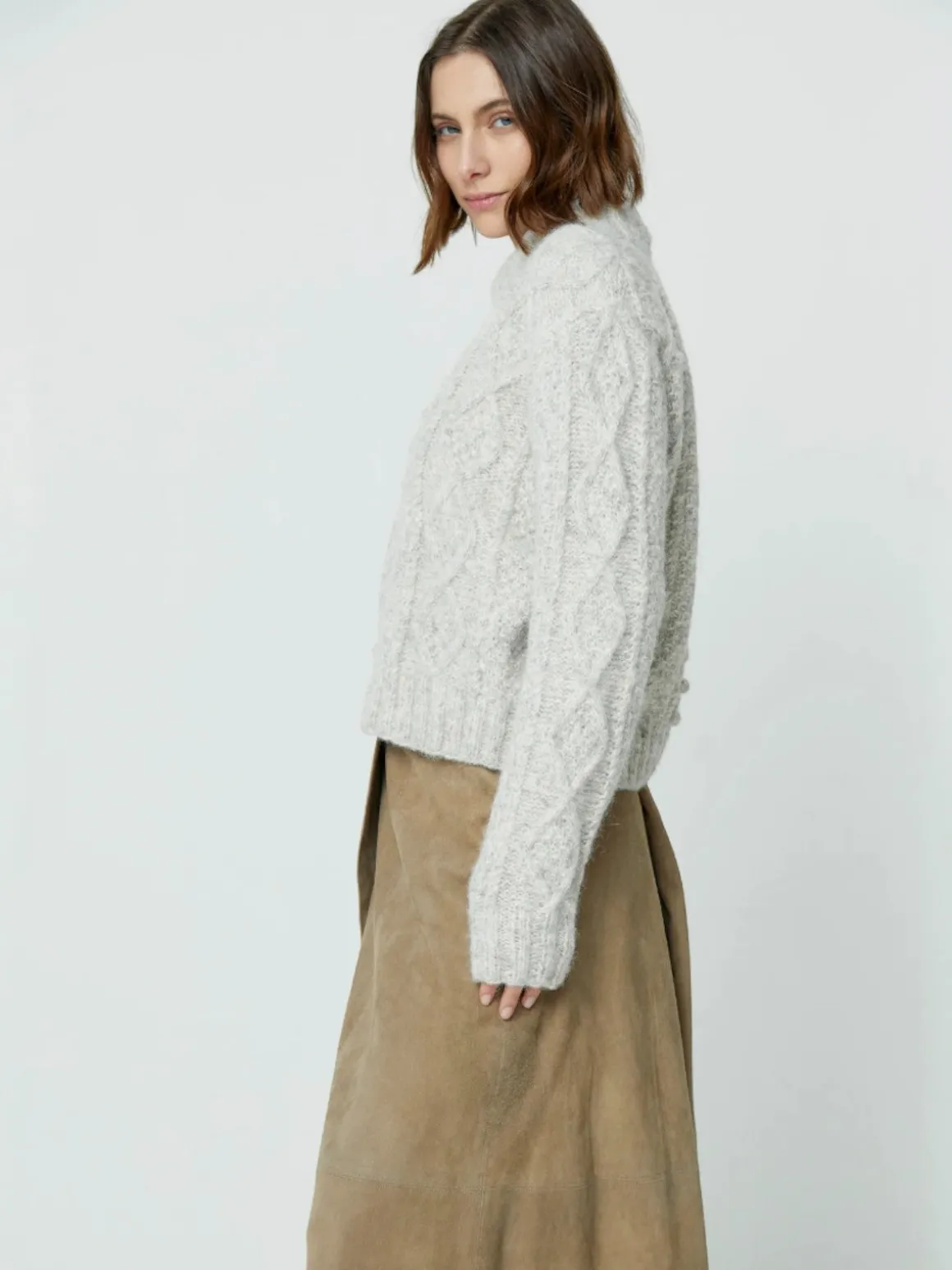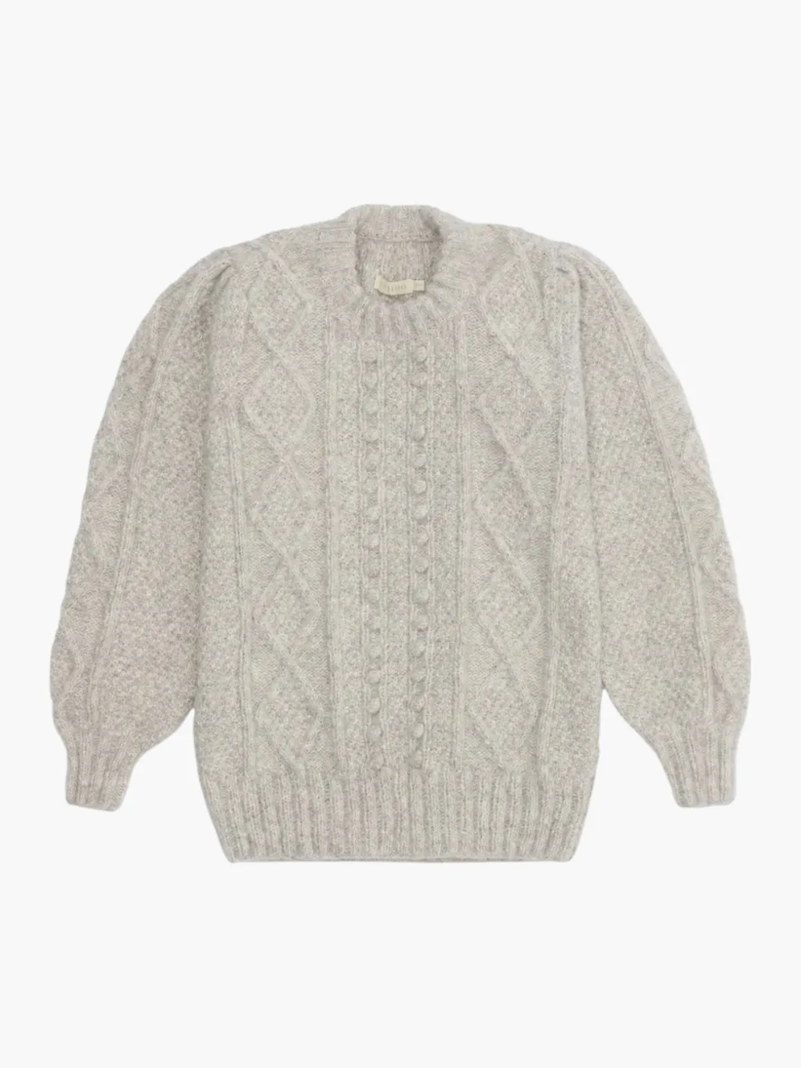 Our Tejido Fisher Seed Puff Pullover in Dove showcases a timeless stitch pattern, complemented by subtly pleated puff shoulders. Rich in both texture and warmth, this design embodies a harmonious fusion of comfort and artisanal craftsmanship. With its slightly oversized silhouette, it offers an effortlessly chic and enduringly elegant style. Handcrafted by female artisans in Peru using locally sourced sustainable materials.