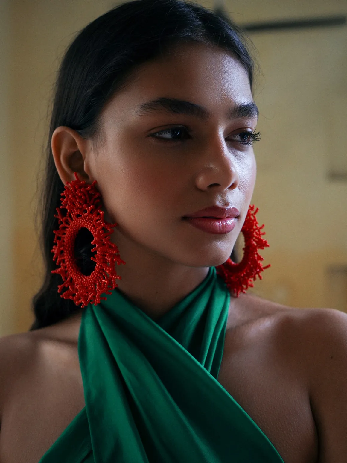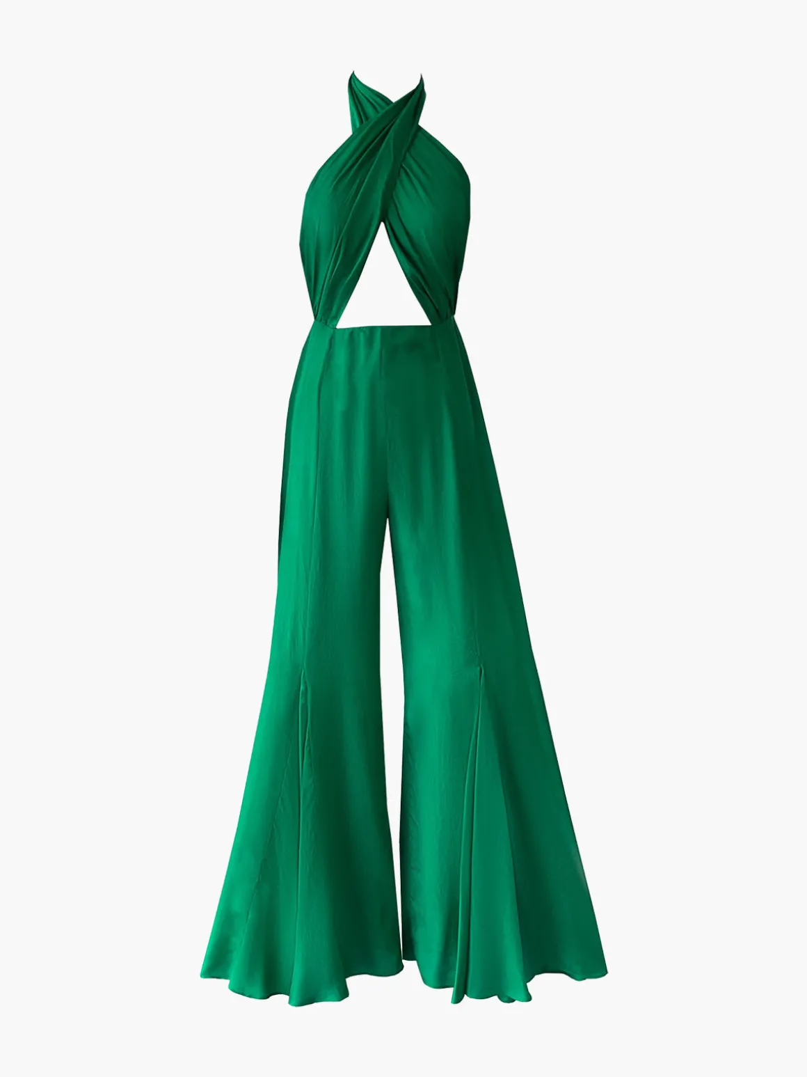 Our De Castro Goa Jumpsuit boasts flared mermaid-inspired wide legs, a fitted crisscross bodice with a cut out waist, and a tie at the back of the neck. It’s finished with a concealed zipper closure at the back of the waist. Handcrafted by artisans in India.