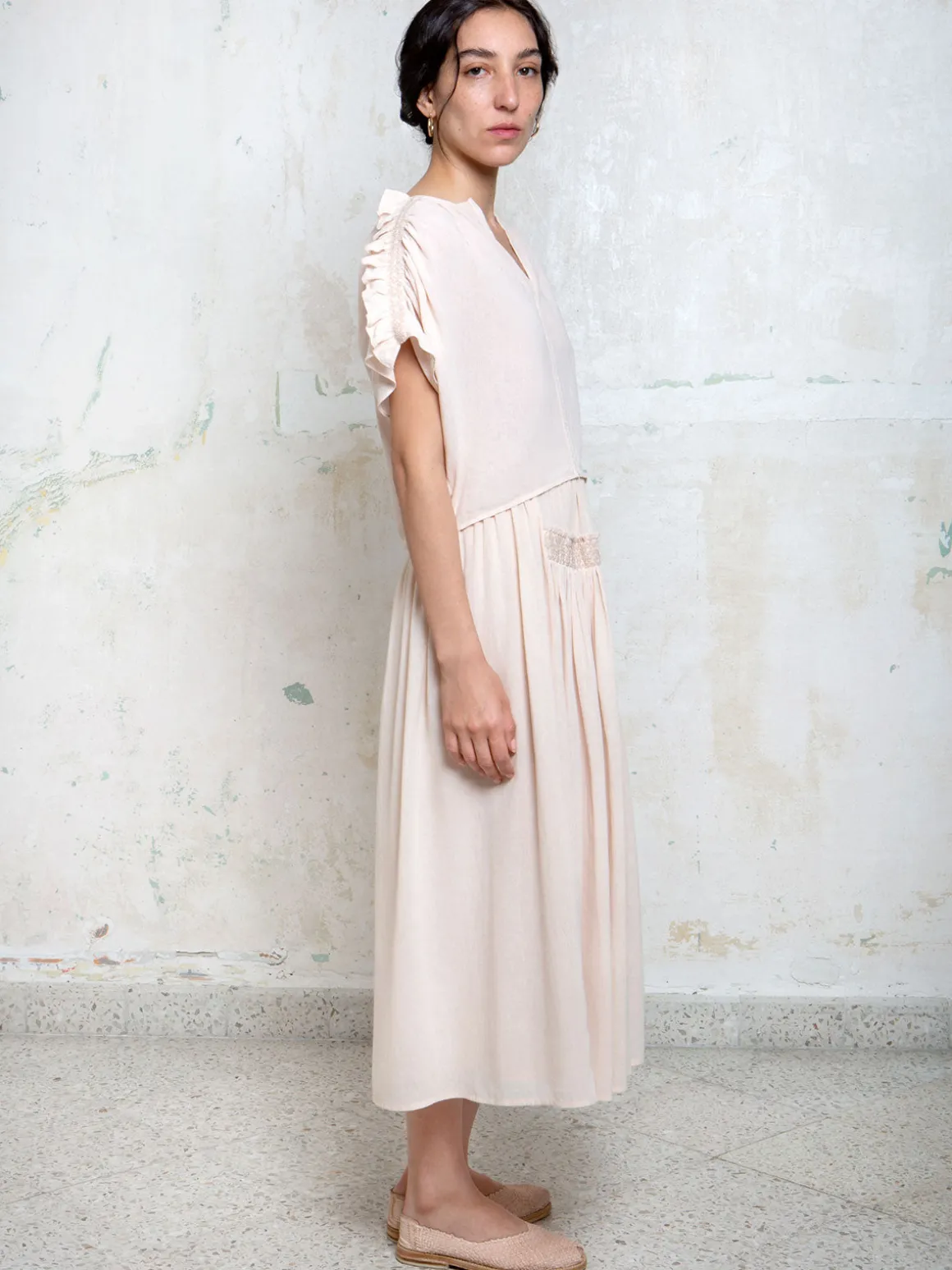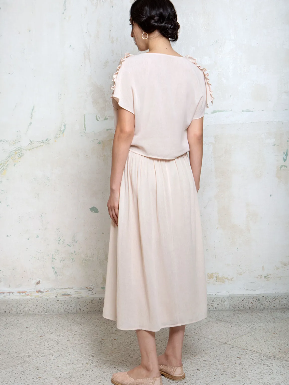 Our Collectiva Concepcion Isabel Skirt in Collectiva Pink features an A-line silhouette in a midi length with a back zipper and button closure. The intricate gathering and embroidered detail is specific to the Chenalhó community in Chiapas. Handcrafted by artisans in Mexico