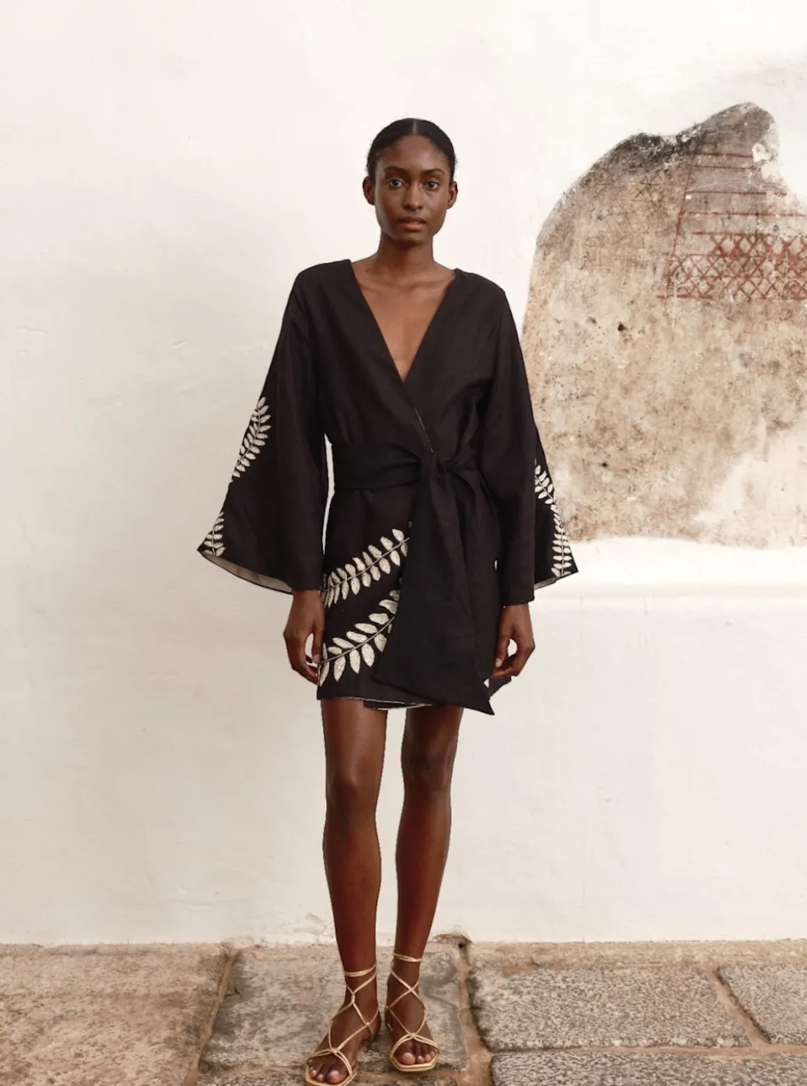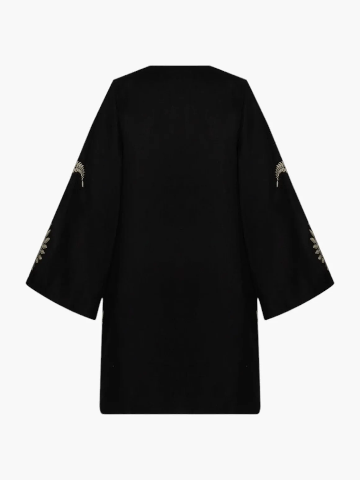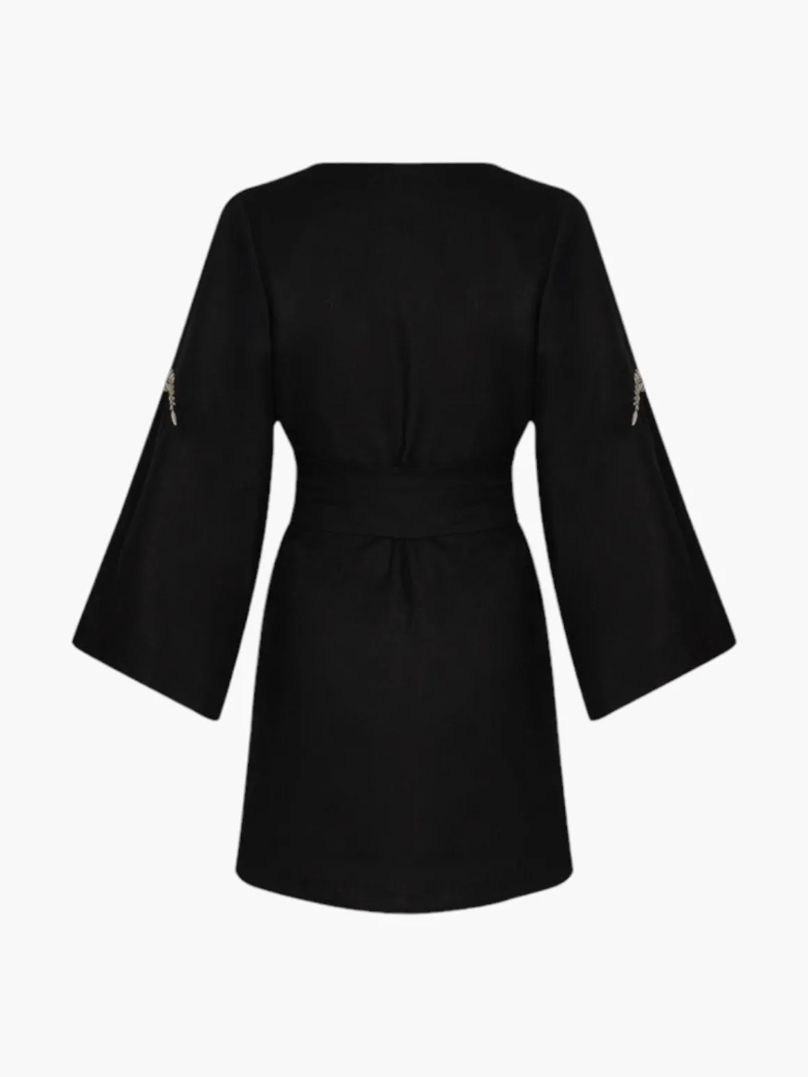Our Juan de Dios Joaquina Silk Jacquard Mini Tunic in Black is a long sleeve tunic in a mini length. It wraps in the front and ties at the waist. You can style this as a dress or wear it as a beach cover up. <span data-sheets-userformat='{"2":14845,"3":{"1":0,"3":1},"5":{"1":[{"1":2,"2":0,"5":{"1":2,"2":0}},{"1":0,"2":0,"3":3},{"1":1,"2":0,"4":1}]},"6":{"1":[{"1":2,"2":0,"5":{"1":2,"2":0}},{"1":0,"2":0,"3":3},{"1":1,"2":0,"4":1}]},"7":{"1":[{"1":2,"2":0,"5":{"1":2,"2":0}},{"1":0,"2":0,"3":3},{"1":1,"2":0,"4":1}]},"8":{"1":[{"1":2,"2":0,"5":{"1":2,"2":0}},{"1":0,"2":0,"3":3},{"1":1,"2":0,"4":1}]},"9":0,"10":1,"11":4,"14":{"1":3,"3":1},"15":"Arial","16":12}' data-sheets-value="{u0026quot;1u0026quot;:2,u0026quot;2u0026quot;:u0026quot;The Chiminango Blouse is a feminine one-shoulder, drapped silhouette featuring Juan de Dios's iconic jungle themed silk jacquard woven exclusively for brand. Pair with the Amaime Midi Skirt to create the ultimate evening look.