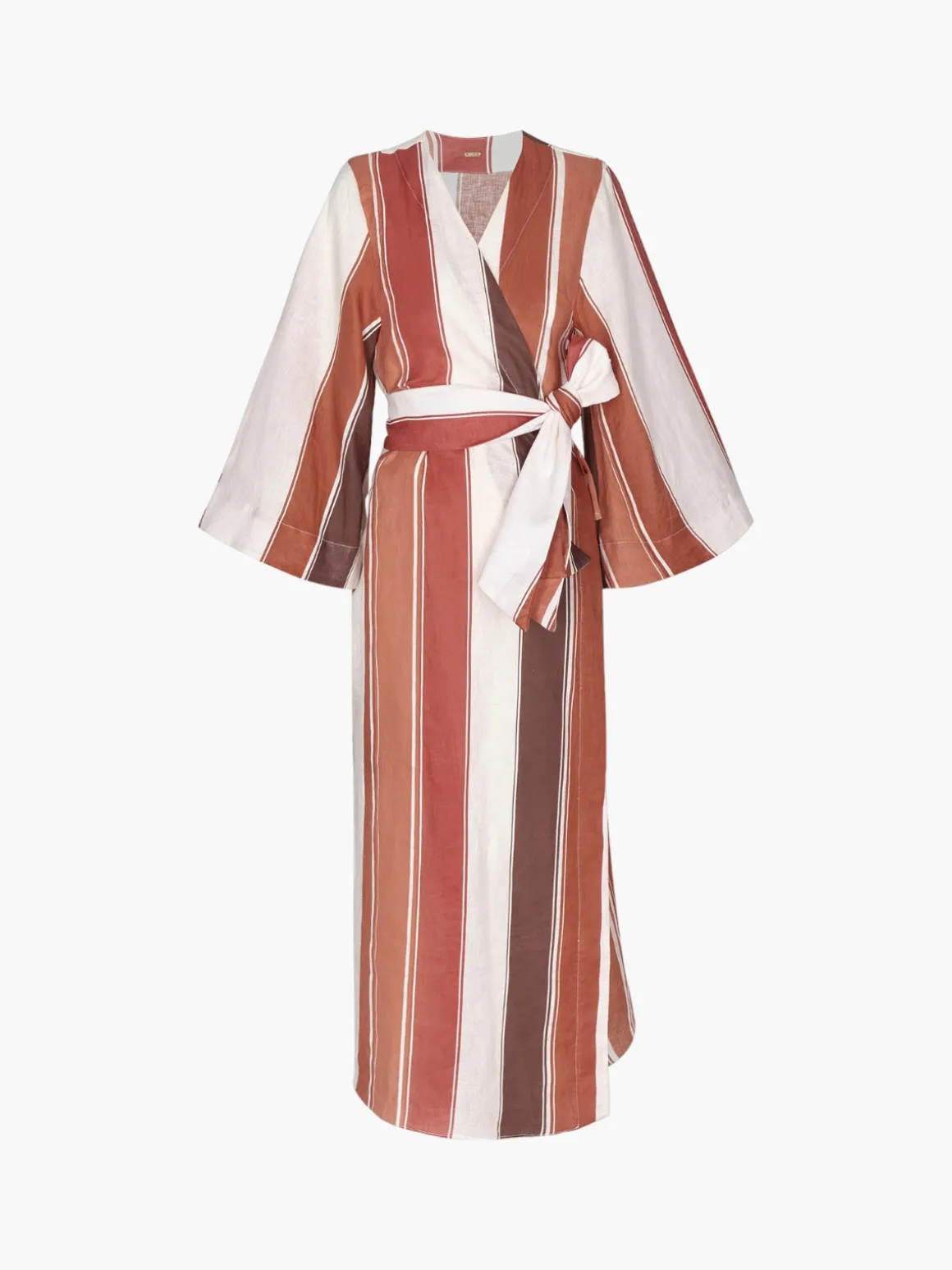 Our Juan de Dios Joaquina Linen Kaftan in Terra Stirpes features a classic Kaftan silhouette with a removable belt. Handcrafted in Colombia by female heads of households.