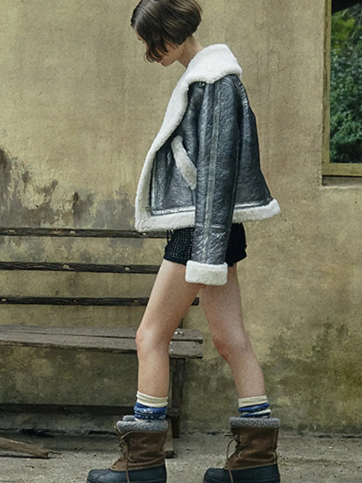 Our Melina Pinedo Napoles Jacket in Silver is crafted from a soft Napa Leather exterior and a cozy fully lined, high-pile shearling interior. This jacket features a water resistant leather treatment with a plague pocket and wool detail. Handcrafted by master artisans in Argentina using locally sourced by-product materials.