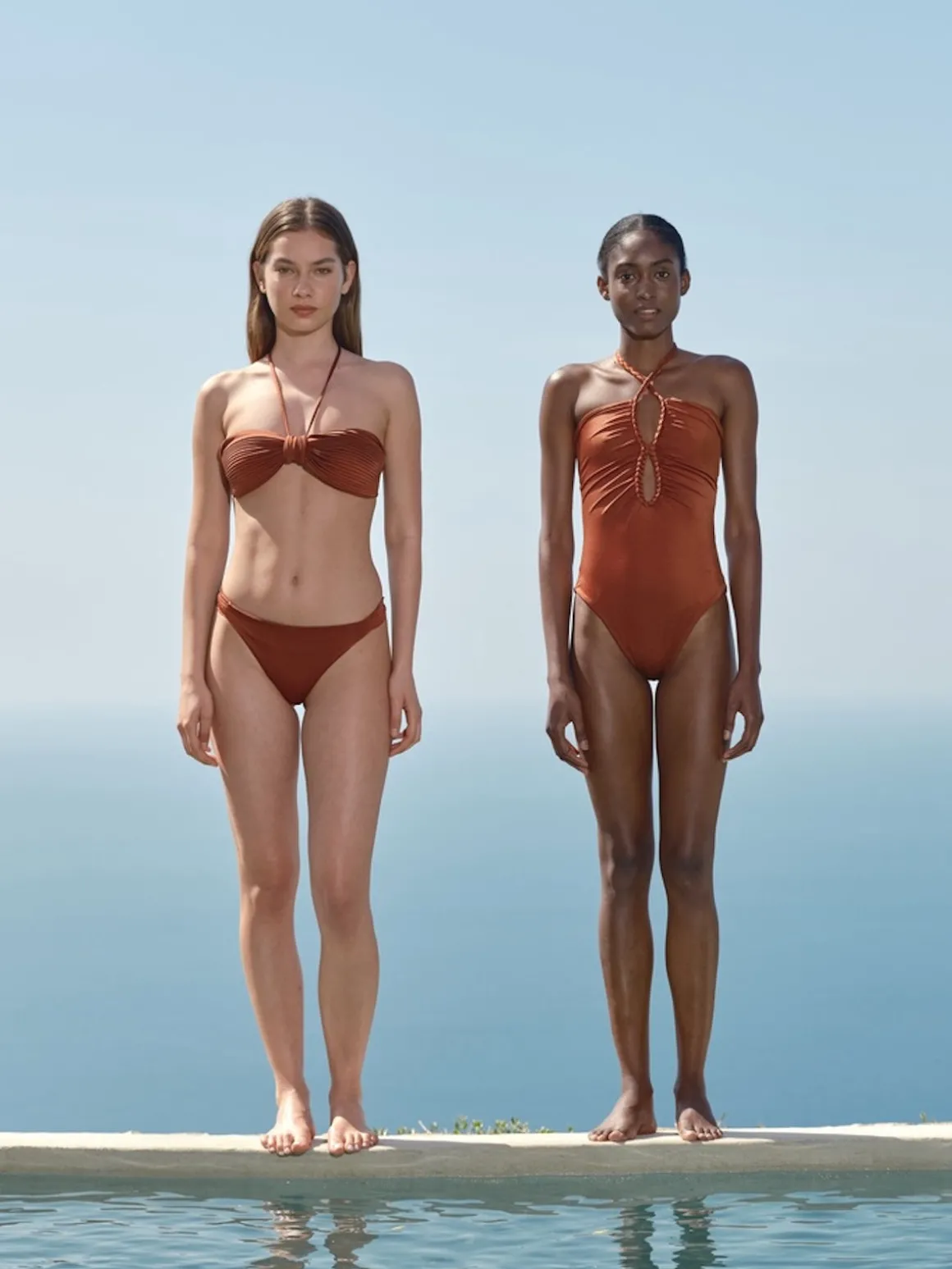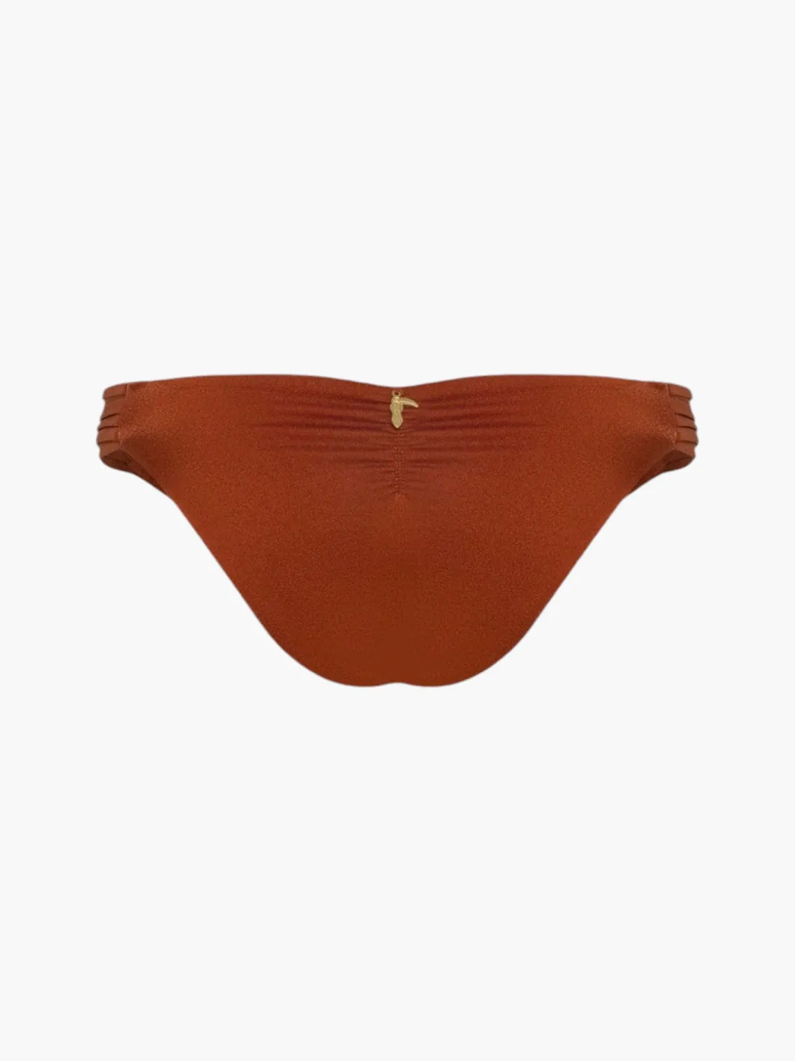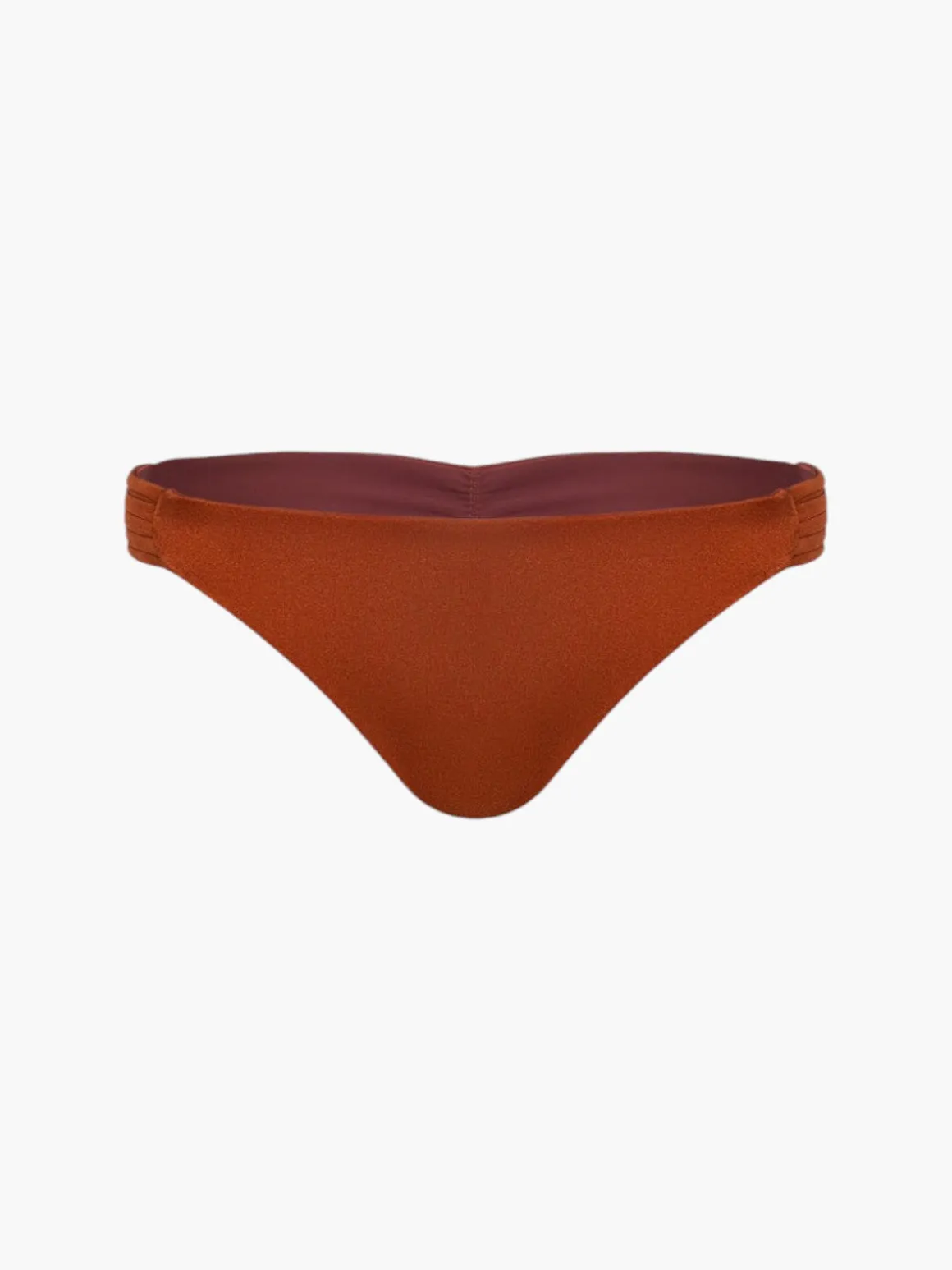 Our Juan de Dios Potosi Bottom in Dattero/Namibia features a low rise silhouette with ruched accents on each side and a gathered accent at the back. Handcrafted in Colombia by female heads of households.