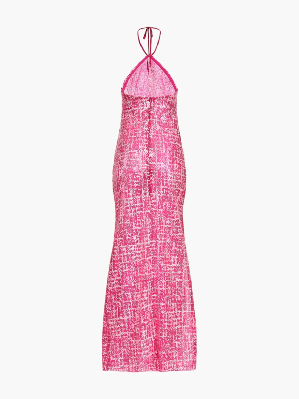 Our Francesca Miranda Serata Halter Dress exudes bold sophistication with a sleek, modern design. Featuring a high halter neckline and a form-fitting silhouette, it blends timeless elegance with a hint of retro glamour. The textured pink tweed fabric catches the light, making it a captivating statement piece for any occasion. Handcrafted by female heads of households in Colombia.