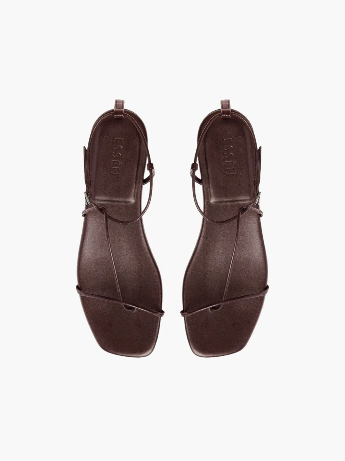 Our ESSEN The Evening Sandal in Chocolate features a minimalist silhouette with barely-there slender straps and a subtle adjustable buckle closure at ankle. Finished with a flexible rubber outsole and a cushioned memory foam padding for added comfort. Handcrafted by artisans in Italy. *Please note, the on-model image shows the sandal in black.*