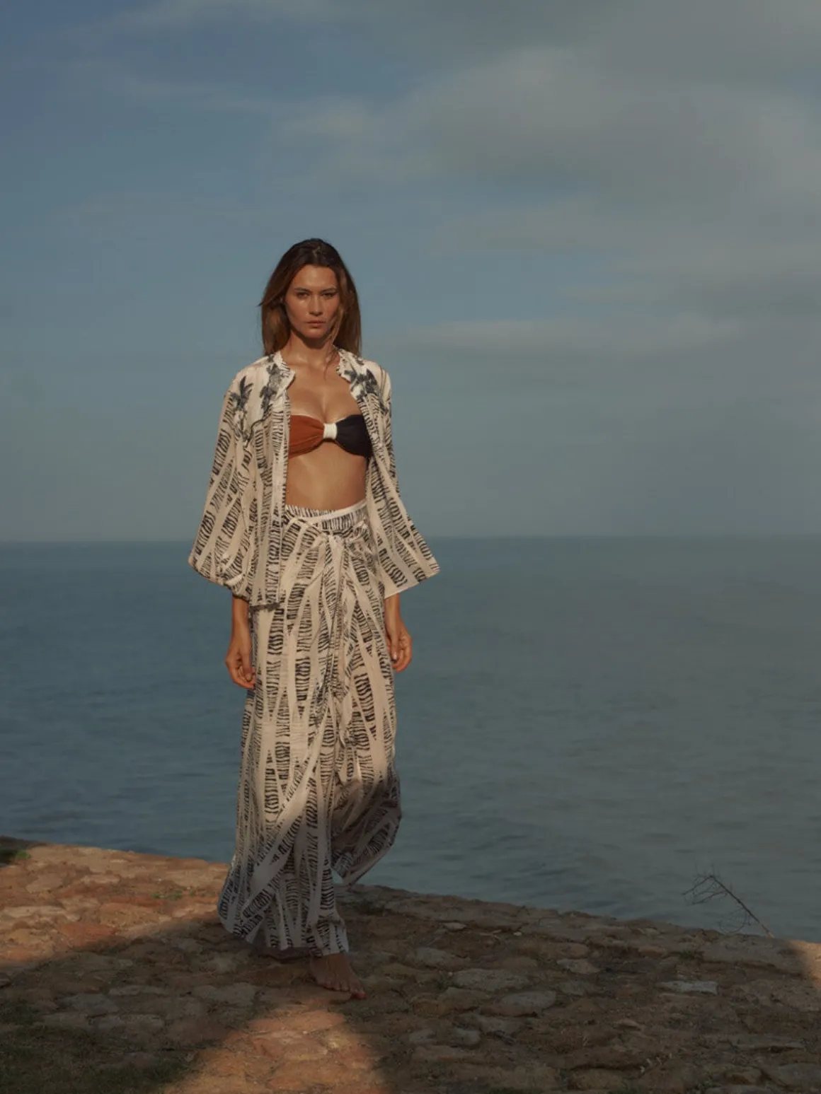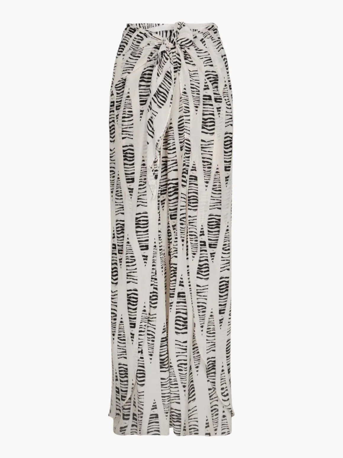 Our Juan de Dios La Bamba Crepe Chine Pants in Cream Canoe are a flowy pant with ruching detail and a front tie belt detail. Zipper on the side. Handcrafted in Colombia by female heads of households.