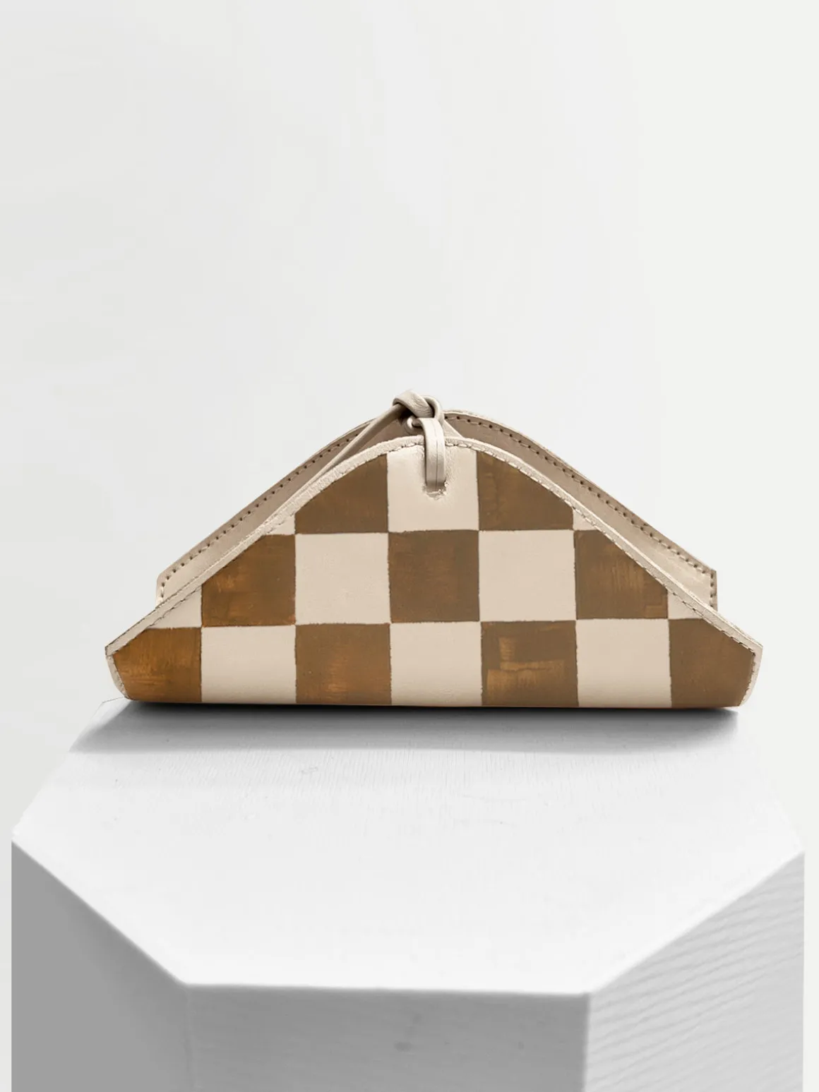 Our Alepel Napkin Holder Madison in Olive Beige boasts a sleek, modern look in a folded shape handpainted with a two-tone checkerboard pattern. Pair with our Madison placemats, vase, and candle to create a perfectly coordinated tabletop. Handpainted by artisans in Brazil.